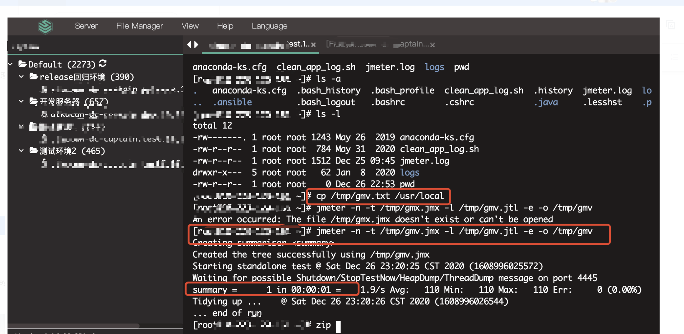 2.创建好jmx文件后用root权限在linux跳板机中运行非gui命令