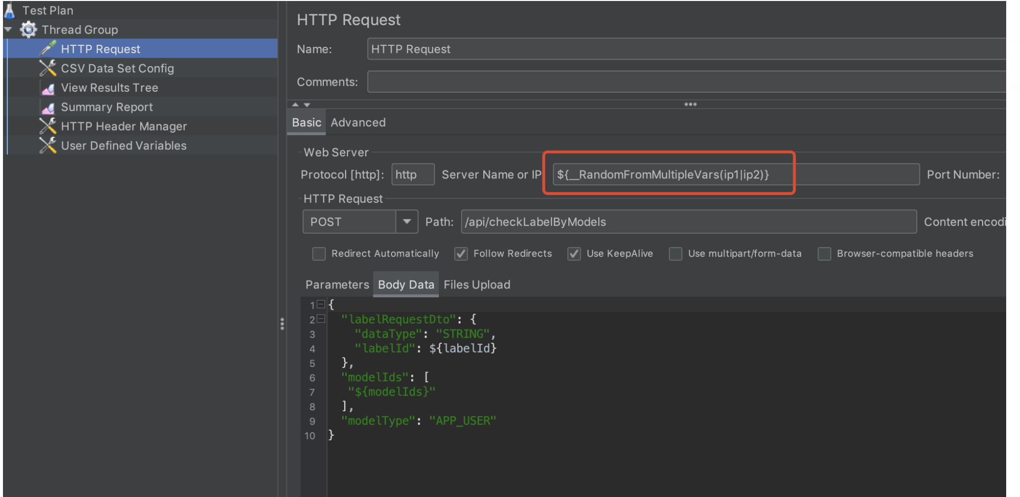 ${__RandomFromMultipleVars(ip1|ip2)}是随机获取变量ip