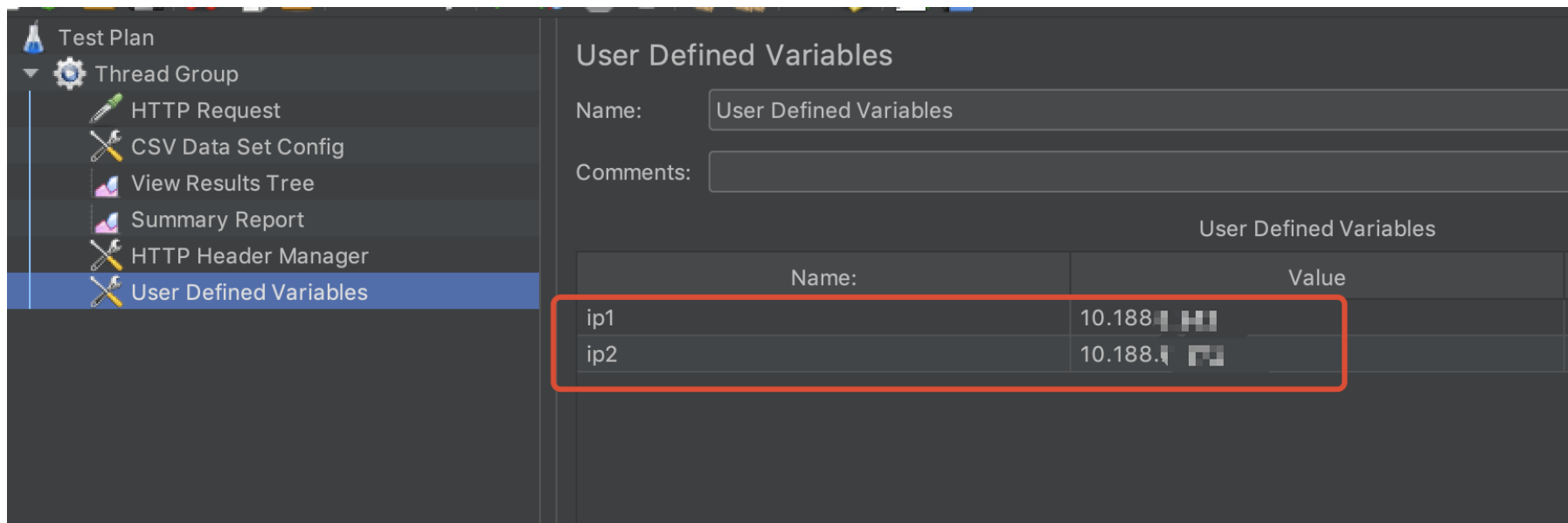 IP值存在用户自定义变量中,也可以${ip}放到csv文件中