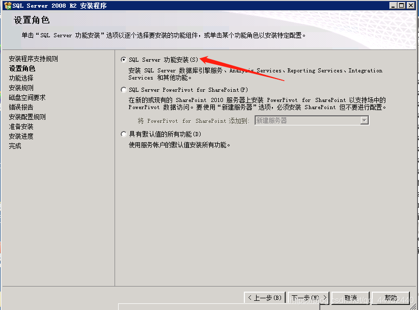9、选择”SQL server功能安装“,点击”下一步“