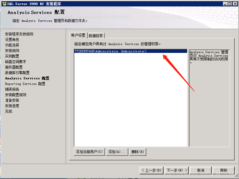 SQL Server Analysis services 选 NETWORK SERVICE