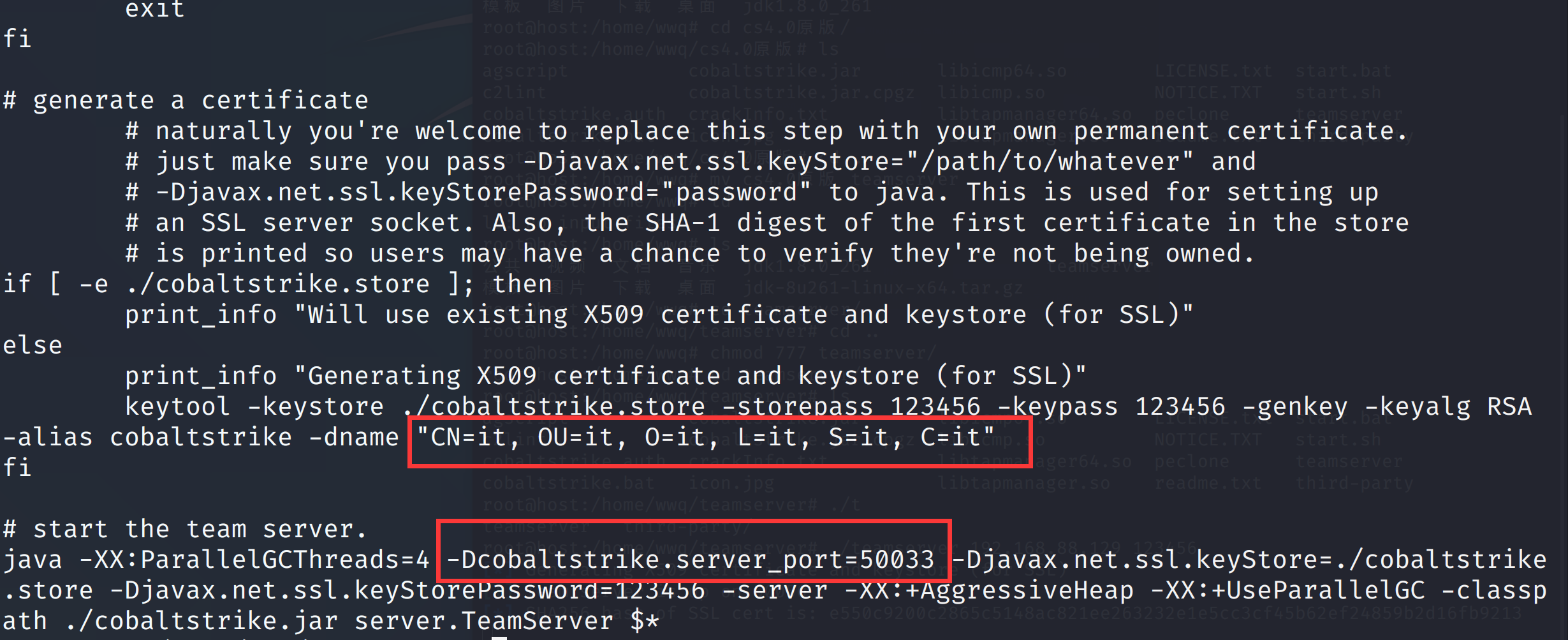 vim teamserver,拉到末尾,修改默认端口,以及cs其他特殊参数。