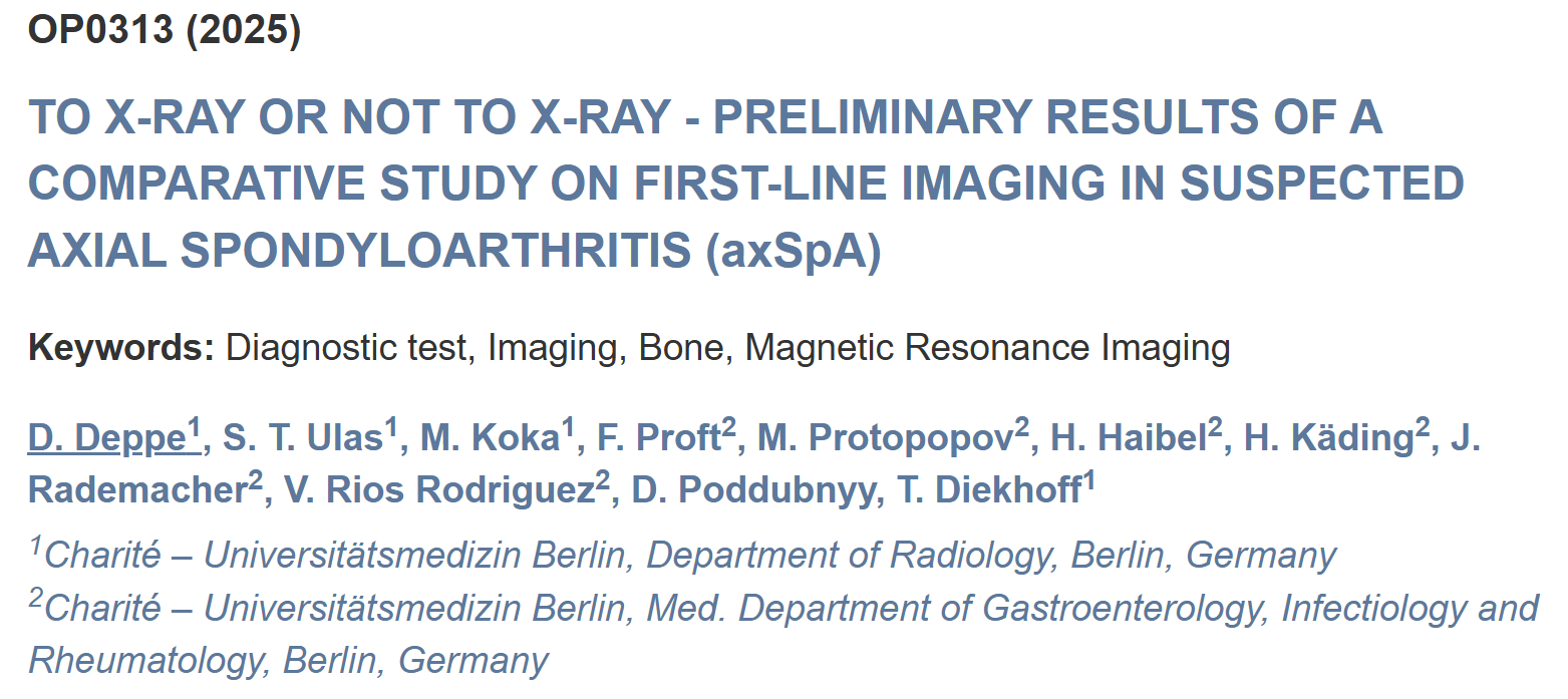 进行还是不进行X线检查 - 疑诊axSpA一线影像检查比较研究的初步结果[德国]