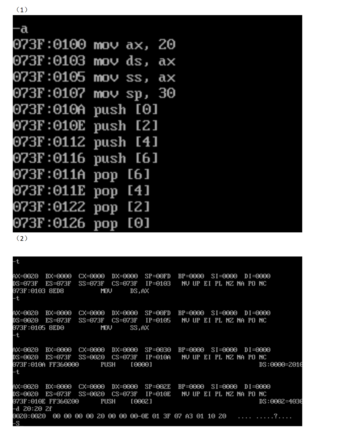 push [0] (sp)= 002E push [2] (sp)= 002C push [4] (sp)= 002A push [6] (sp)= 0028 pop [6] (sp)= 002A pop [4] (sp)= 002C pop [2] (sp)= 002E pop [0] (sp)= 0030