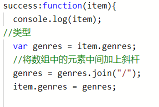 ①在对着爬下来的数据一个一个对着改时,我们发现有些数据在wxml文件中中不能很好的展示,比如类型genres是一个字符串数组
