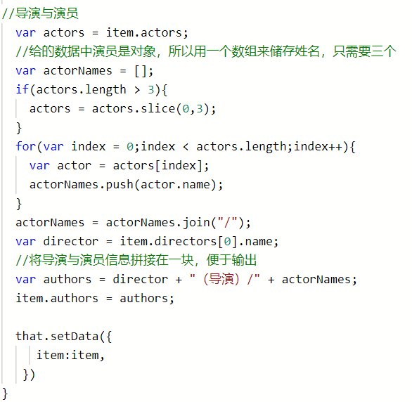 后面在渲染导演和演员数据的时候,也用的是这样的方法(演员他给的数据太多了,于是我们就用了三个,而且演员给的是对象,而我们只需要姓名即可)
