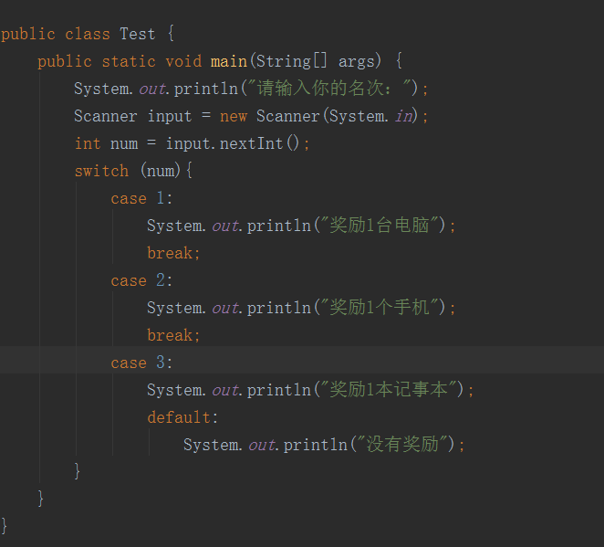 当我输入3 也就是第三名 奖励一本记事本