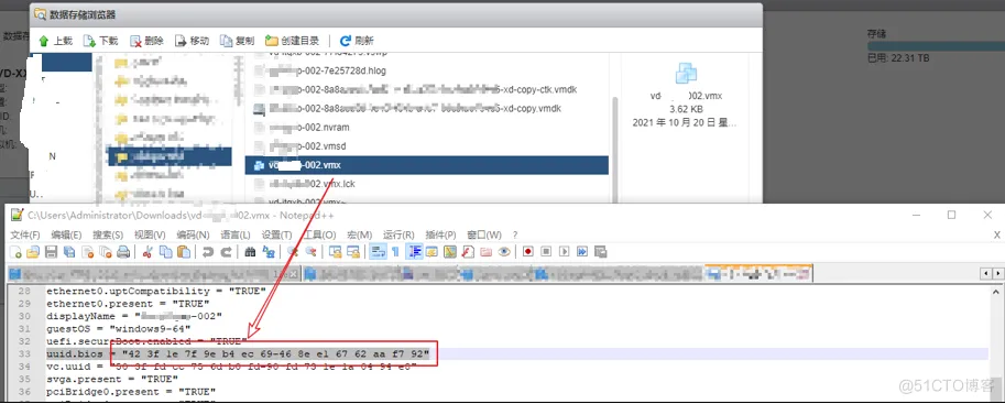2、查看vmware上虚拟机的uuid,如下图所示。