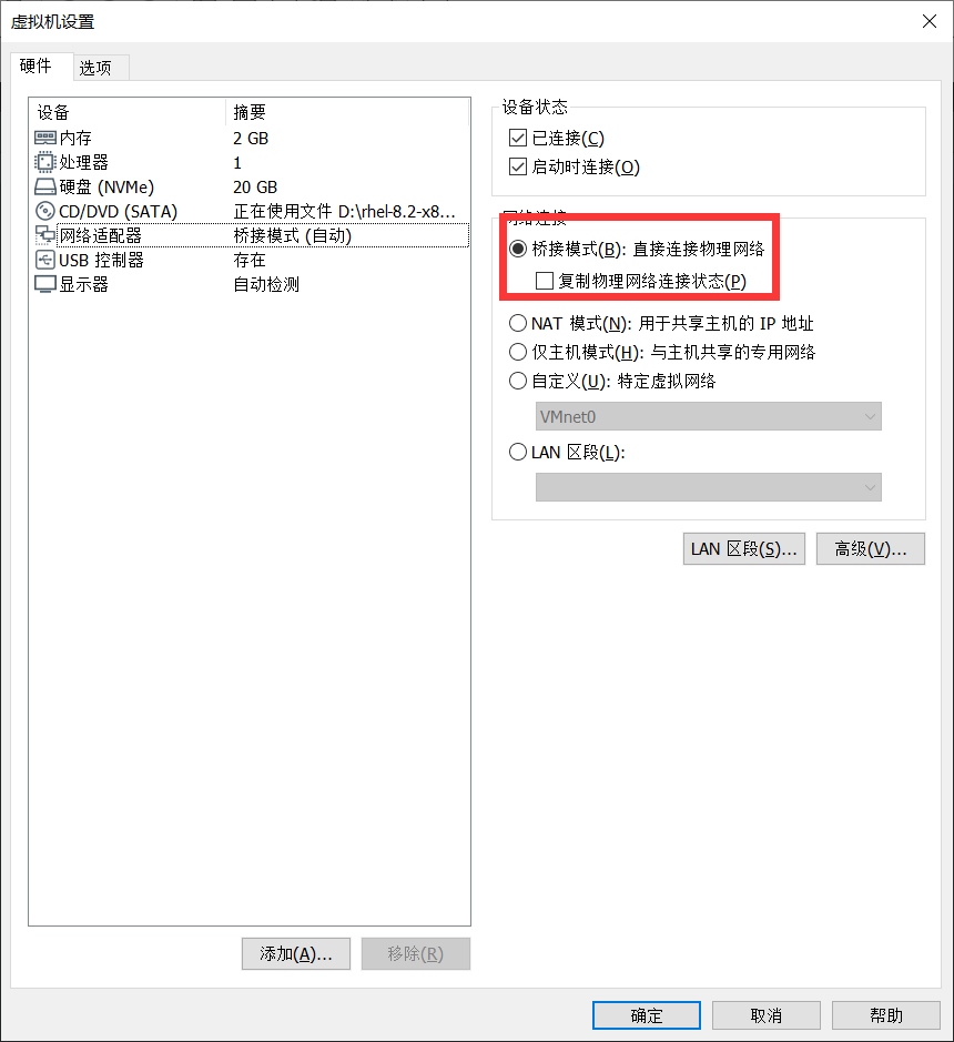 在虚拟机软件VMware中用三种不同的网络连接模式进行ssh远程连接