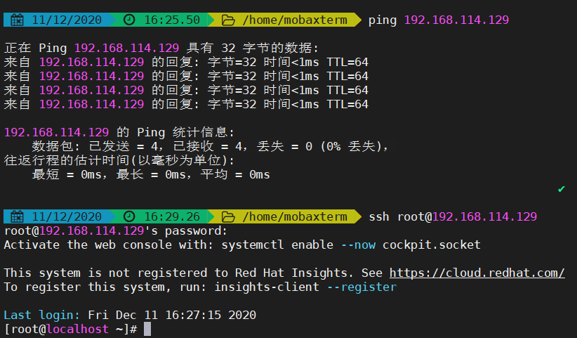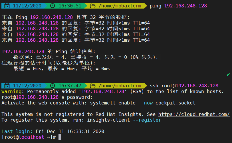 总结:三种方式都可启动ssh服务,但是主机模式无法联网。