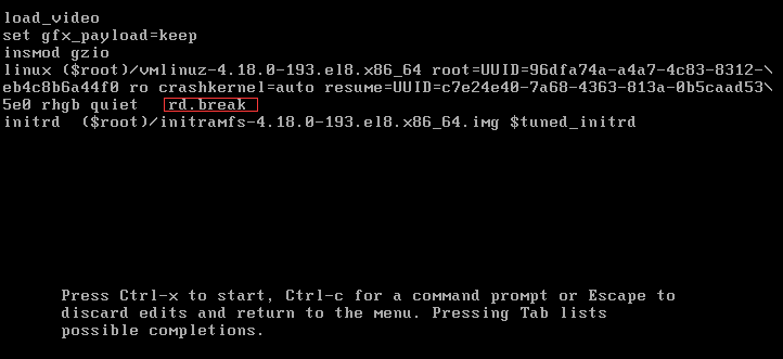 2、在linux16末尾加上 rd.break,ctrl+x执行
