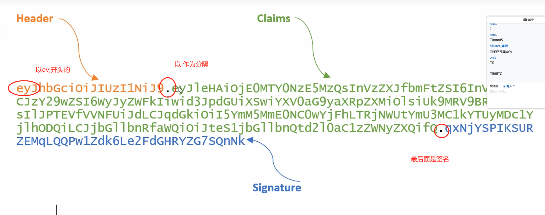 同时拥有该部分的JWT被称为JWS,也就是签了名的JWT。