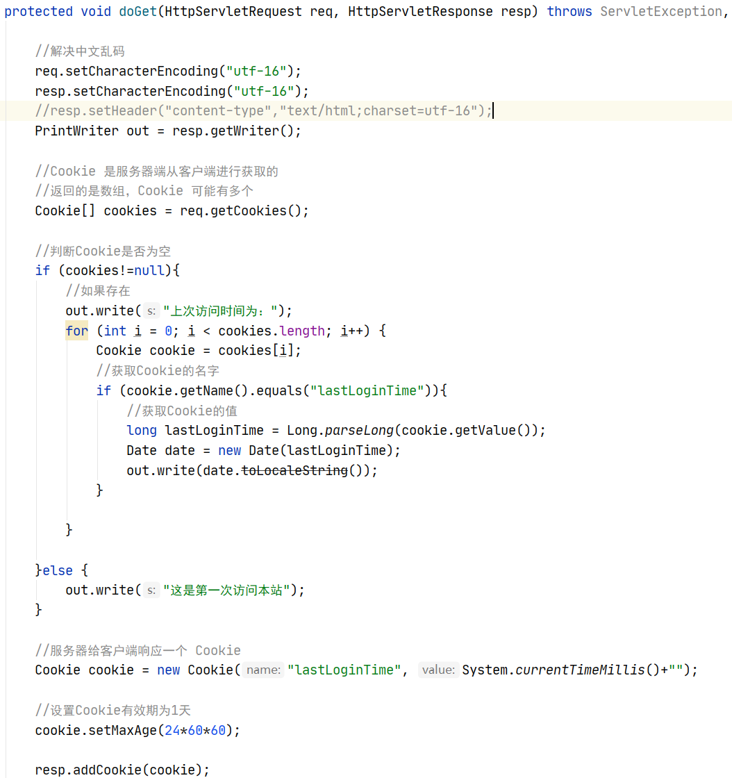 new Cookie("lastLoginTime", System.currentTimeMillis()+"") : i新建一个 cookie