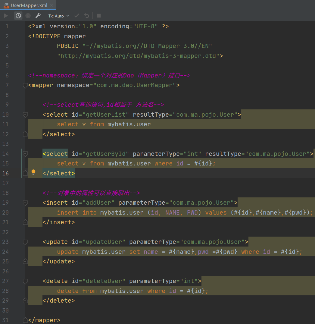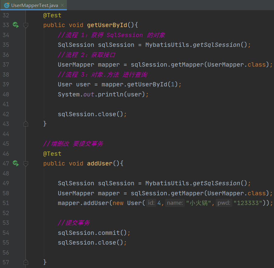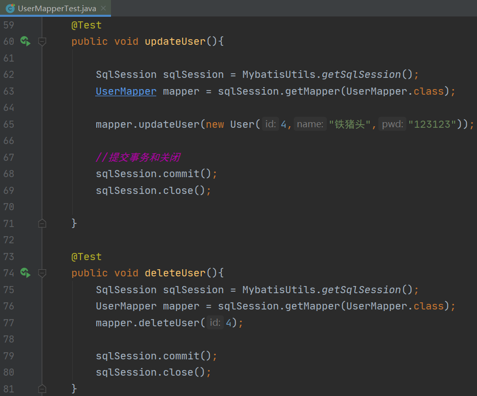 4 . 测试类 UserMapperTest.java 测试类的修改与删除