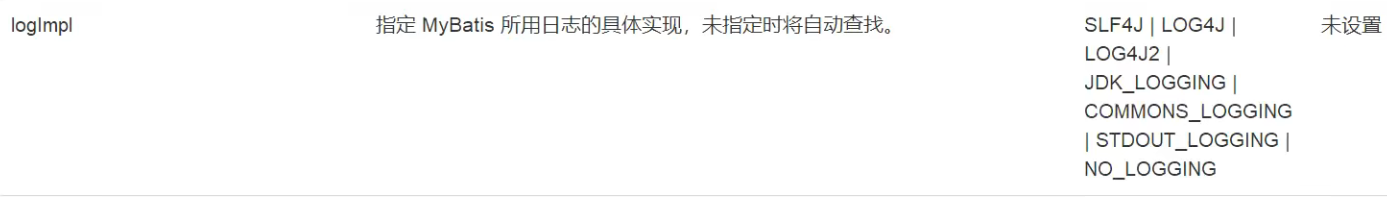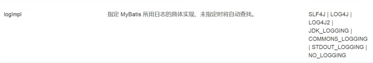 2 . 指定 MyBatis 应该使用哪个日志记录实现。如果此设置不存在,则会自动发现日志记录实现