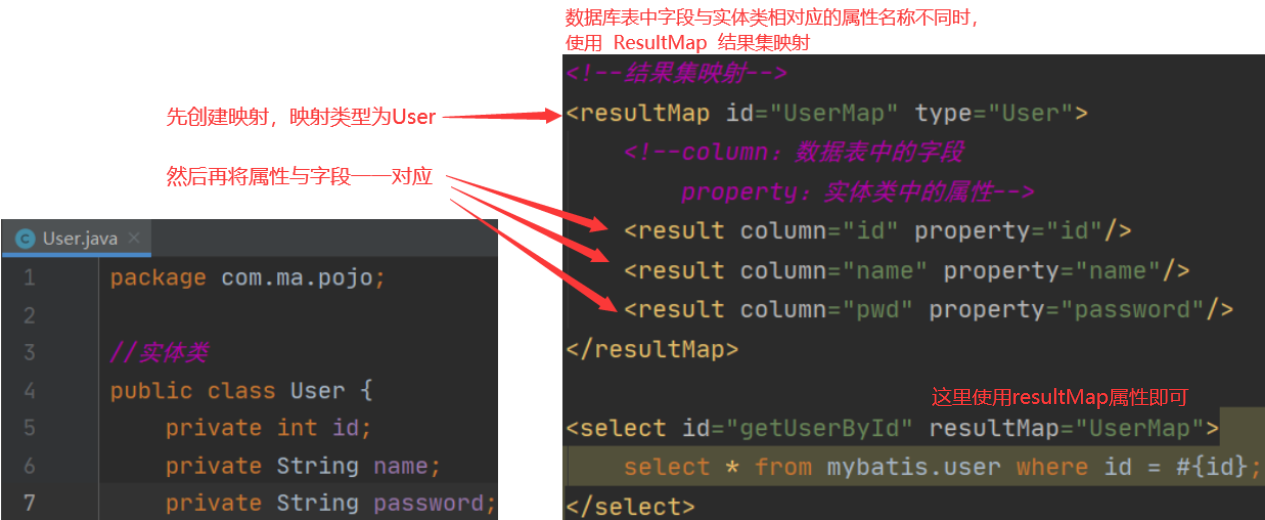 五 . ResultMap(结果集映射):解决属性名和数据表中字段名不一致的问题