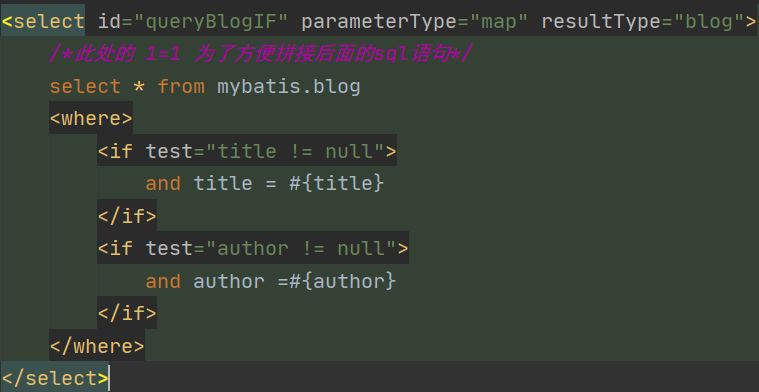 PS: 类似于上面这样先套一个where标签,可以解决当第一个匹配条件失效时,因为第二个条件开头是 and 而出现的语法错误