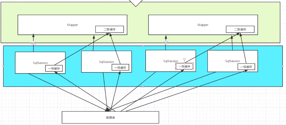 2 . 当会话提交和关闭时,一级缓存中的的数据才能转到二级缓存中