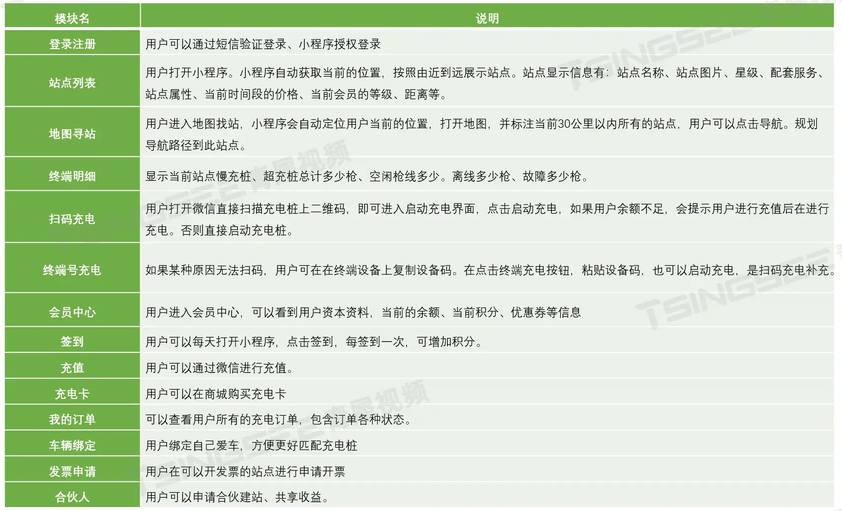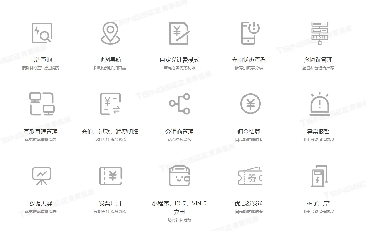 充电用户可以通过APP或者小程序扫码充电,完成充电停车缴费以及找站等各项服务。运营方可通过管理后台,实现对用户管理、监控及管理电桩和充电站,自定义计费模式,统计各项数据等功能。