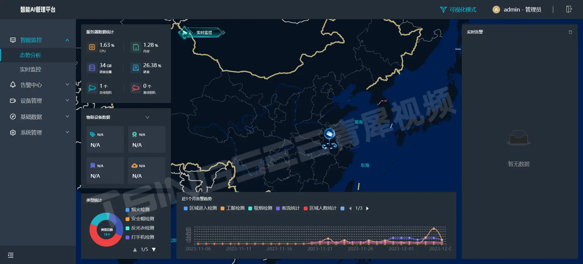 - 异常行为识别:通过分析视频画面,自动识别人员异常聚集、人员抽烟等行为,并及时抓拍和告警。