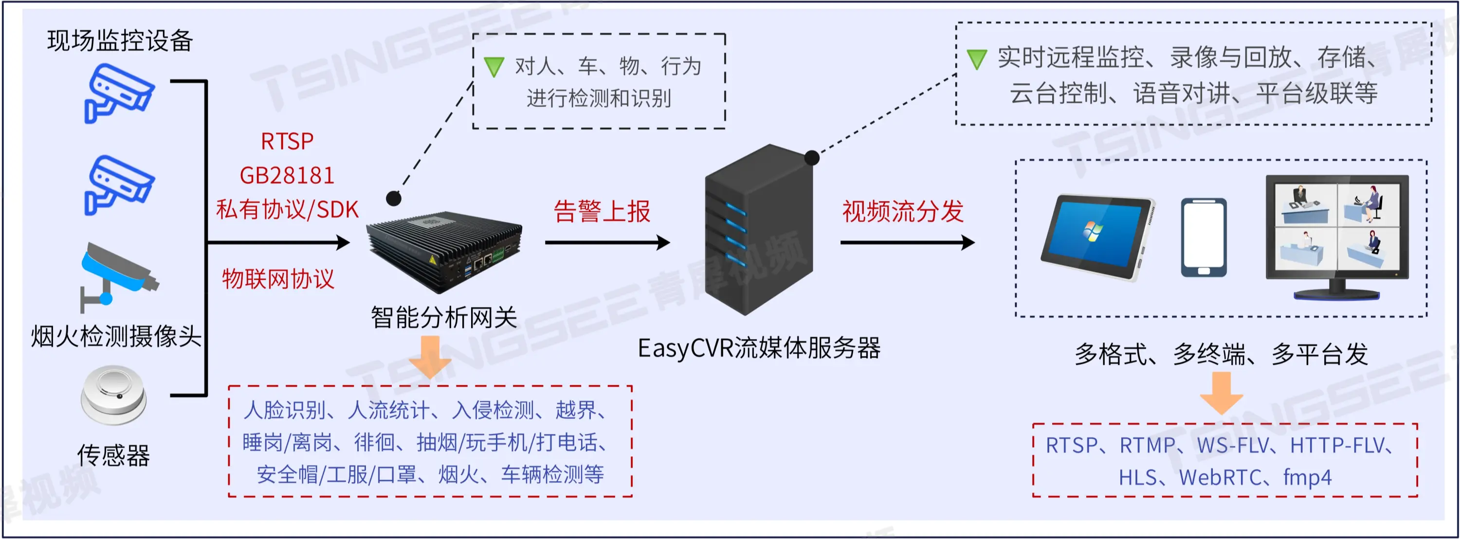 AI视频智能检测周界安全防范方案是一种高效、准确的周界安全防范手段。TSINGSEE青犀智能分析网关V4周界安全防范方案,可以应用于各种场景,如学校、园区、住宅小区、工地、工厂、仓库、机场等。方案不仅提高了安全防范的效率和准确性,还降低了人力成本和误报率,为各类重要设施的安全保驾护航,是现代周界安全防范的理想选择。