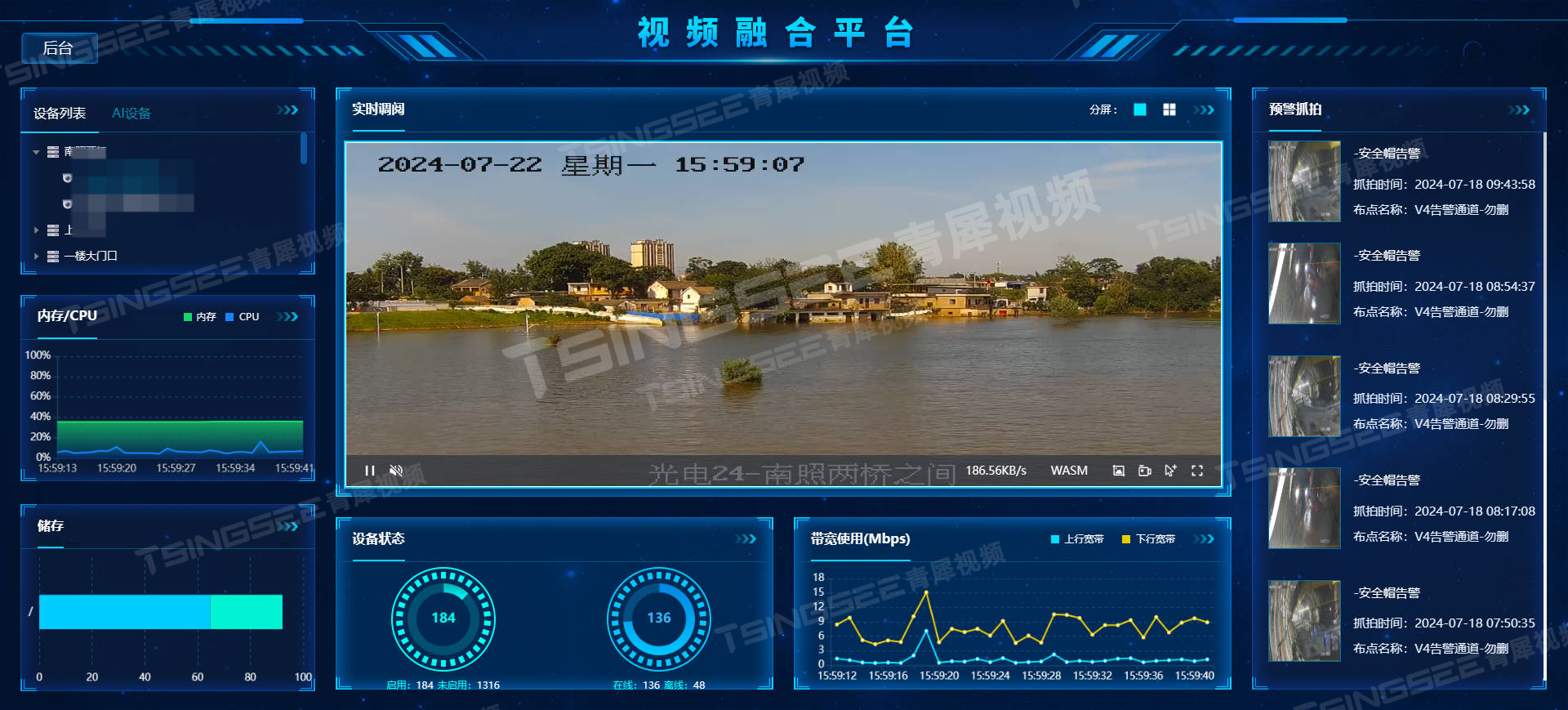 通过EasyCVR视频汇聚网关可以极大地让集成工作变得简单。TSINGSEE青犀视频EasyCVR视频汇聚网关支持对接各品牌的视频监控平台、录像机、摄像头等设备,可以通过简单配置完成对接与视频资源汇聚,为智慧平台、可视化大屏等业务呈现平台输出RTMP、RTSP、HTTP-FLV、WebSocket-FLV、HLS、WebRTC、WS-FMP4、HTTP-FMP4等格式的视频流,完成丰富的视频能力呈现。由于提供了视频转码能力,可以提供更好的视频兼容性,极大地降低了项目开发难度,提升了落地应用体验。