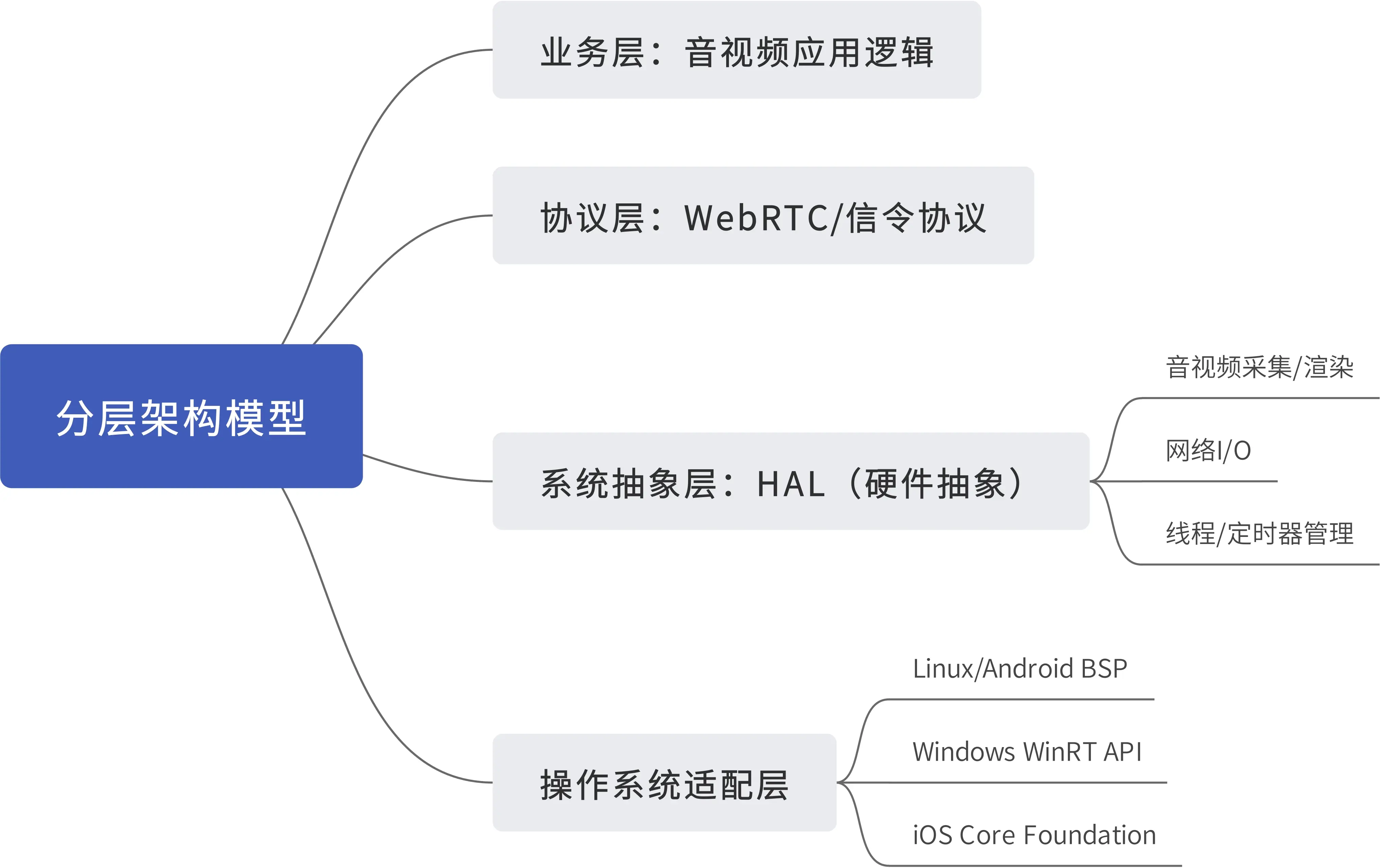 - 音视频设备驱动抽象:ALSA(Linux)/CoreAudio(iOS)/WASAPI(Windows)统一接口设计