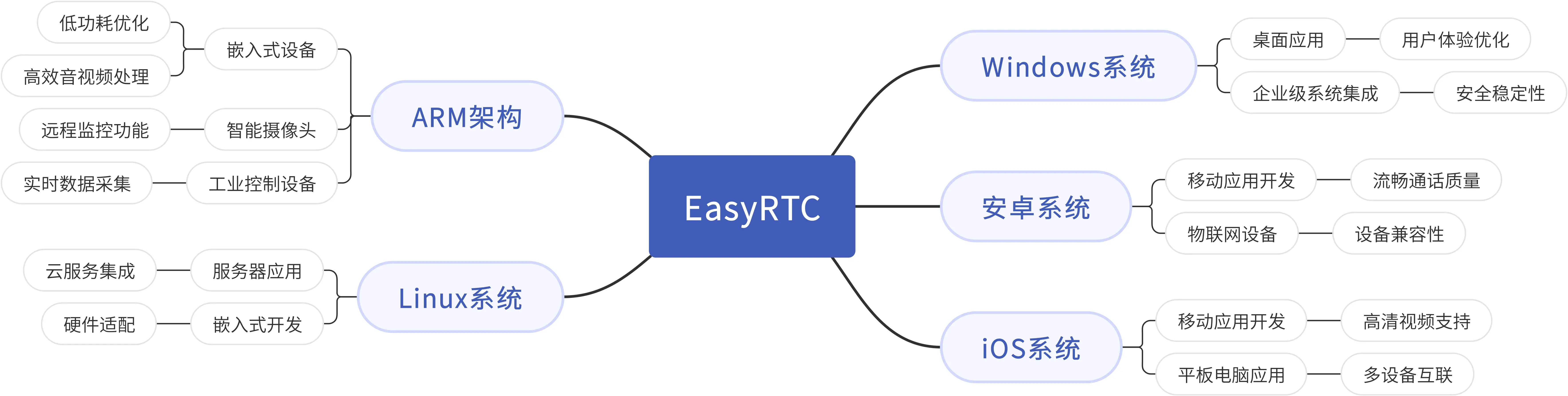 - ARM架构支持:ARM架构在嵌入式设备中广泛应用,如智能摄像头、工业控制设备等。EasyRTC针对ARM架构进行了深度优化,确保在资源受限的嵌入式环境中也能稳定运行,发挥出高效的音视频处理能力。