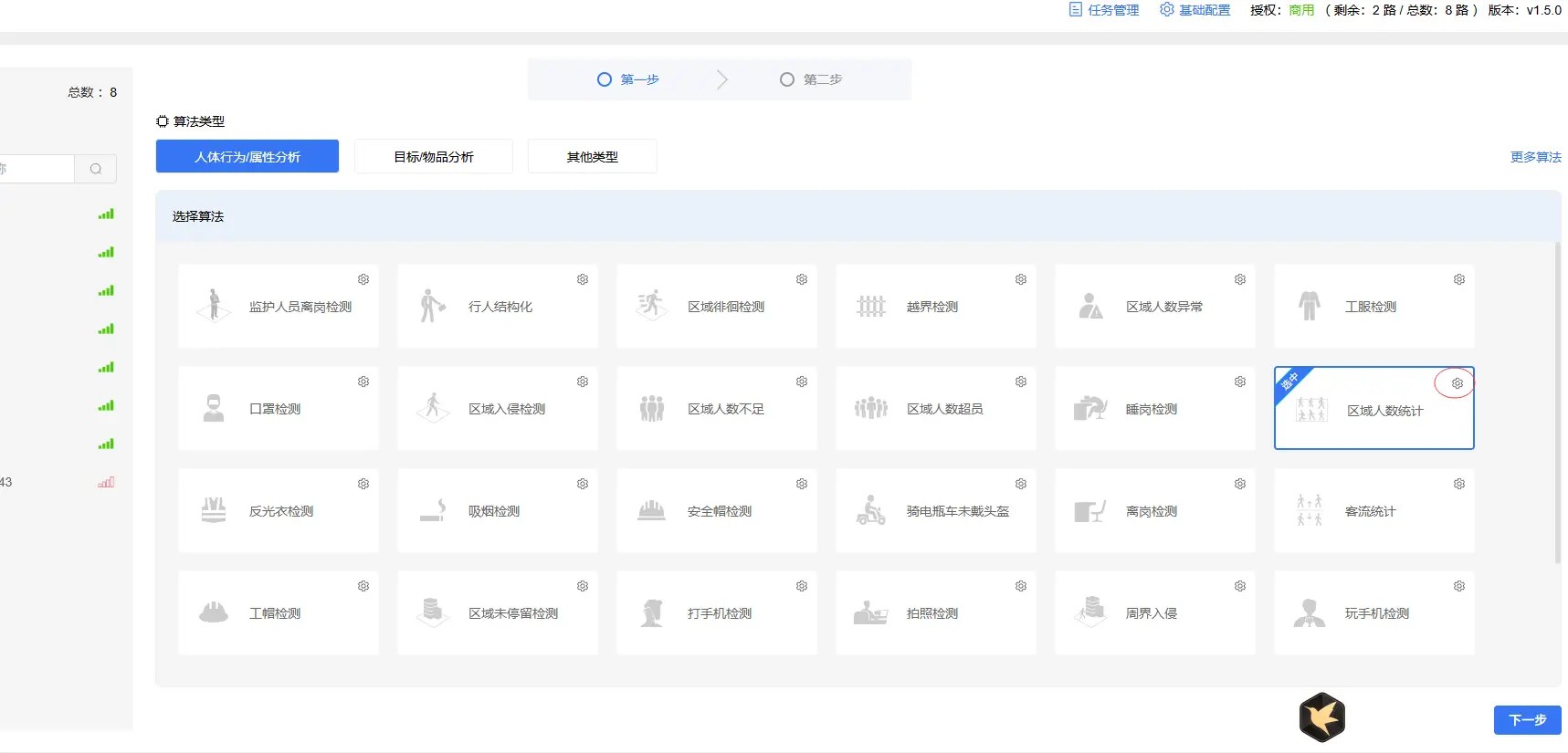 1)在智能分析网关V4管理后台,选中算法后,点击右上角【设置】按钮(如图);