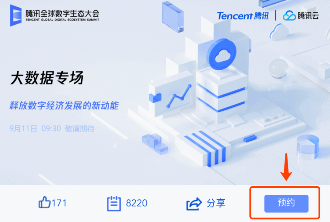 扫描下方二维码,,完成“预约”报名,并保存截图,在 “腾讯云大数据” 公众号后台发送预约成功截图并回复文字 “生态大会“ 即可参与活动~