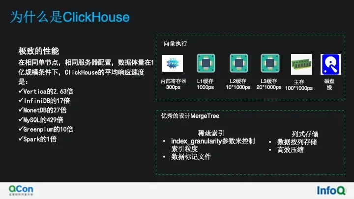 从架构上来看,ClickHouse 并不符合这种架构,那么我们为什么采用改造 ClickHouse 来构建云上数仓呢,是因为 ClickHouse 在多维聚合查询分析场景中极致的性能,那么我们来看看 ClickHouse 在性能 方面有哪些黑科技
