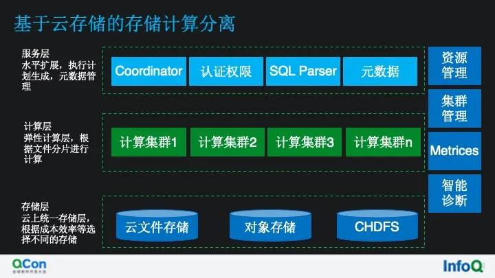 执行层:负责执行 coordinator 下发过来计算任务,负责节点状态上报以及 metric 等信息的上报。
