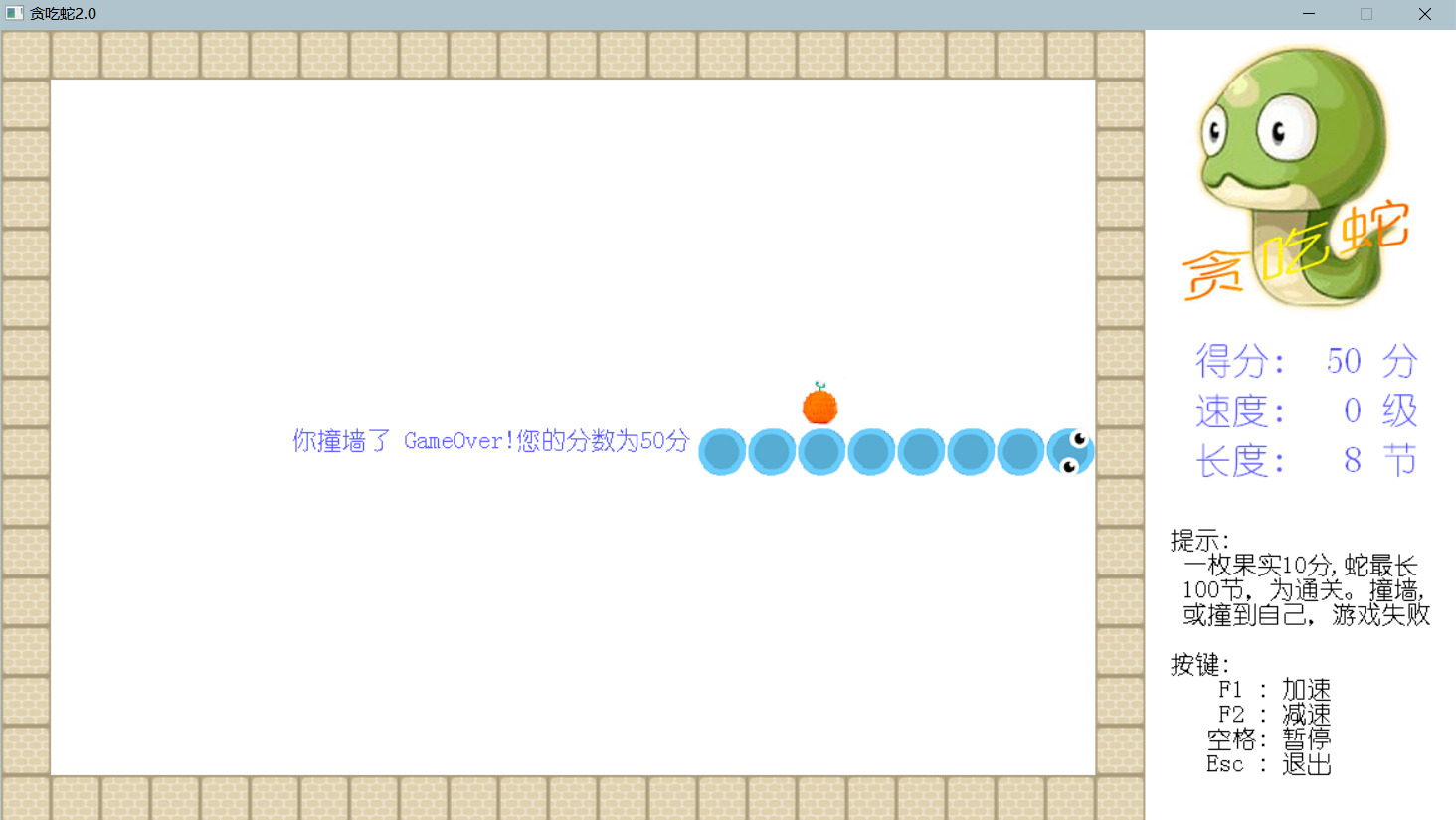 贪吃蛇游戏 2.0 在 贪吃蛇游戏 1.0 的基础上增加了图形界面。