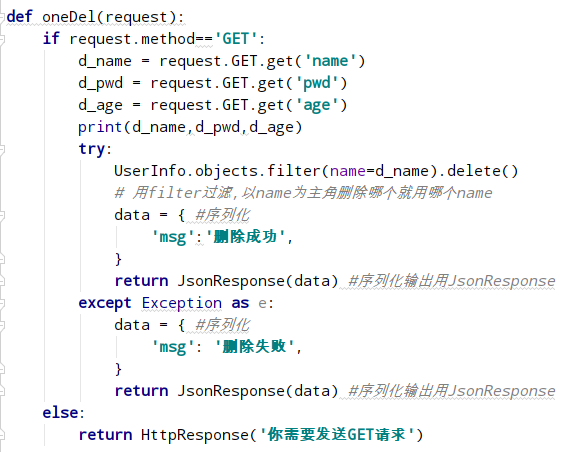 表名.object.filter(字段名=变量名).delete( )