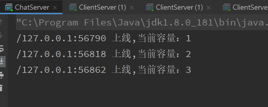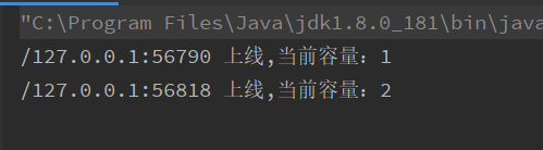System.out.println(channel.remoteAddress()+" 上线,当前容量:"+cg.size());