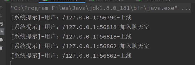 cg.writeAndFlush("[系统提示]-用户:"+channel.remoteAddress()+"-加入聊天室\n");
