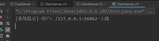 cg.writeAndFlush("[系统提示]-用户:"+channel.remoteAddress()+"-上线\n");