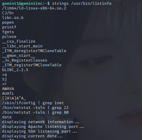 查看他包含的字符串,发现其包含系统命令