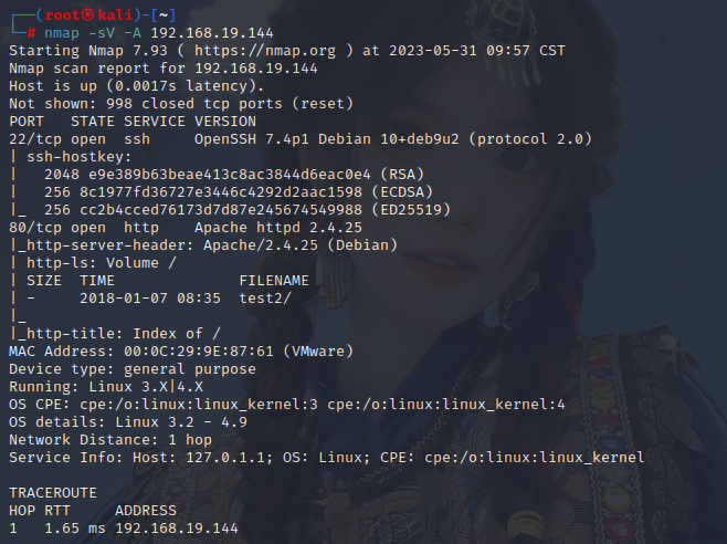 详细扫描靶机ip