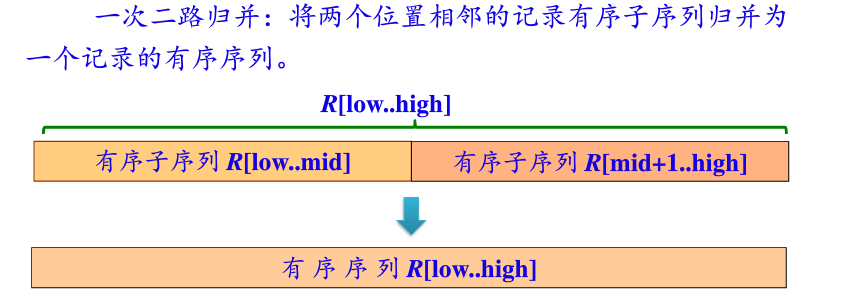 void Merge(int low,int mid,int high){ // 相邻两个有序子序列归并成一个