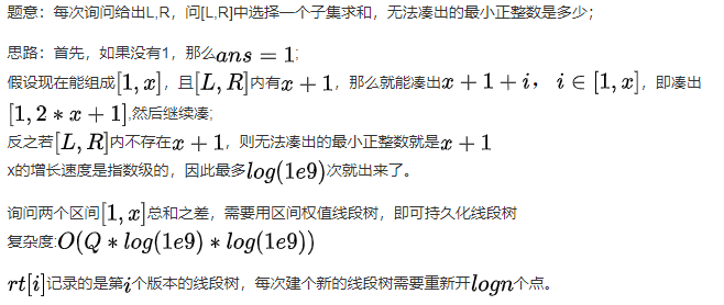 实际上 “发现存在” 这一步操作就是查找区间 [1,ans+1] 的和 sum 为多少,然后更新 ans = sum;