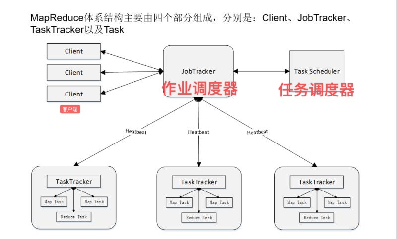 负责任务调度(解决应该把哪个Task(任务)分发给哪个TaskTracker去执行(各个TaskTracker是分布在不同的机器上面,负责执行具体任务))