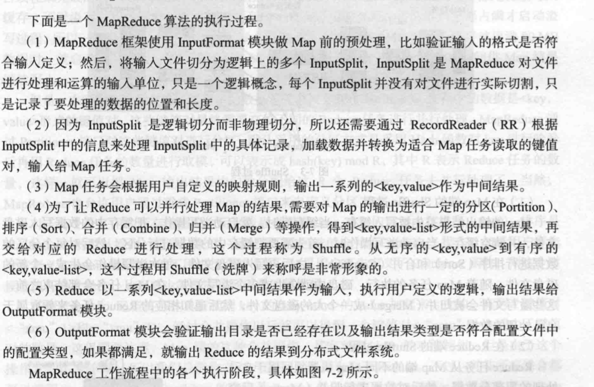 这是MapReduce应用程序基本执行过程,包含五大阶段,输入文件、map阶段、中间文件阶段、reduce阶段和输出文件阶段。