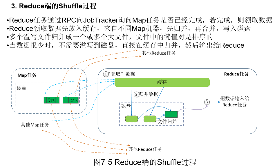 JobTracker会跟踪Map任务,JobTracker一旦检测到Map任务写完数据,JobTracker就会通知相应的Reduce任务,把这些属于该Reduce任务处理的分区数据让Reduce拉走。