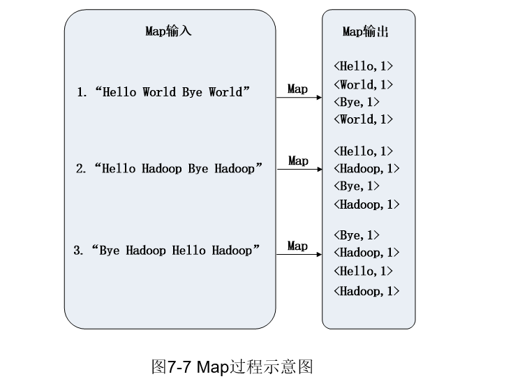 现在看起来是只有一个map任务和一个reduce任务,但实际上在集群当中有非常多个map任务以及非常多reduce任务,且很多map任务和reduce任务同时执行。