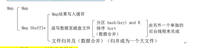 会先写到缓存当中,当缓存满的时候发生溢写,把缓存中的数据写到磁盘里面生成磁盘文件,同时把缓存清空掉,当把缓存当中的数据溢写到磁盘中的时候,会经历分区、排序、可能发生的合并以及文件的归并。