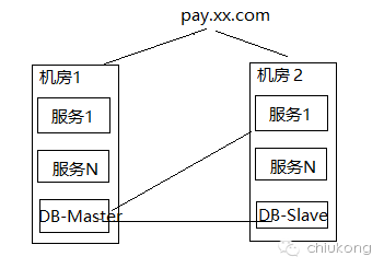 - DB(mysql)仅有一个,机房2跨机房访问机房1的DB进行读写
