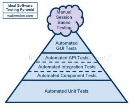 为什么要画成一个金字塔形,则不是长方形 或倒三角形呢? 这是为了表示不同阶段所投入自动化测试的比例。如果一个产品从没有做单元测试与接口测试,只做UI层的自动化测试是不科学的,从而很难从本质上保证产品的质量。如果你妄图实现全面的UI层的自动化测试,那更是一个劳民伤财的举动,投入了大量人力时间,最终获得的收益可能会远远低于所支付的成本。因为越往上层,其维护成本越高。尤其是UI层的元素会时常的发生改变。所以,我们应该把更多的自动化测试放在单元测试与接口测试阶段进行。
