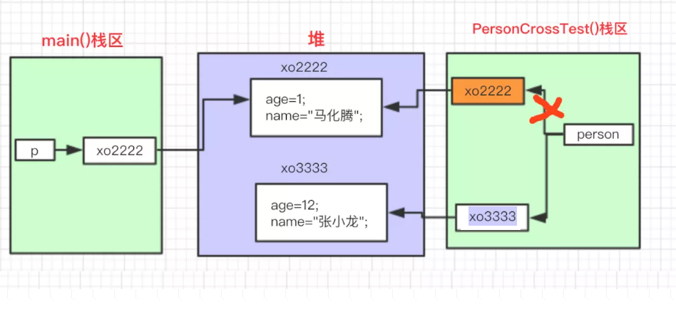 System.out.println("方法内重新赋值后的name:"+person.getName());
